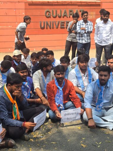 ગુજરાત યુનિવર્સિટીમાં ભરતી પ્રક્રિયા મુદ્દે NSUIનો દેખાવો,ભરતી પ્રક્રિયા રદ કરી અને નવેસરથી શરૂ કરવા માંગ,સિનિયર ક્લાર્કની ભરતીમાં ગોલમાલની ફરિયાદ