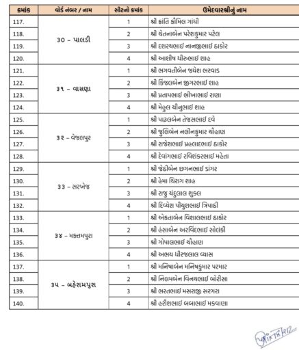 કોંગ્રેસના બાકી ઉમેદવારો સીધા ફોર્મ ભરવા જશે ,ભાજપમાં અમદાવાદમાં 5,000 ઉમેદવારોની ટિકિટ માટે અરજી,ખાનપુર કાર્યાલયમાં ભારે પોલીસ બંદોબસ્ત