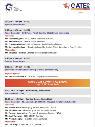 • GCCI દ્વારા ૧૬થી૧૮ એપ્રિલ GATE 2026 હેલિપેડ એક્ઝિબિશન સેન્ટર ગાંધીનગર ખાતે યોજાશે : વિઝન ૨૦૪૭ના લક્ષ્યાંકો સાથે ગુજરાતના વ્યાપારી લેન્ડસ્કેપનું વૈશ્વિકીકરણ