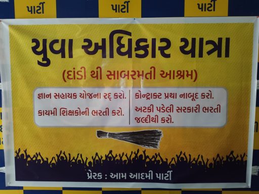 આ કાયદાના વિરોધમાં આમ આદમી પાર્ટીએ એક યાત્રાનું આયોજન કર્યું છે. આમ આદમી પાર્ટી દ્વારા આ યાત્રા દાંડીથી શરૂ કરવામાં આવશે અને ગાંધી આશ્રમ સુધી આ યાત્રા ચાલશે. અંગ્રેજોના શાસનમાં મીઠા પર ટેક્સ લગાવવામાં આવ્યો હતો તે સમયે ગાંધી આશ્રમથી દાંડી સુધી યાત્રા કાઢવામાં આવી હતી અને મીઠાના કાયદાને રદ કરાવવા માટે મહાત્મા ગાંધીજીએ યાત્રા શરૂ કરી હતી. એ જ રીતે અમે ઉંધી દાંડી યાત્રા શરૂ કરવા જઈ રહ્યા છીએ. આ યાત્રા નું નામ ‘યુવા અધિકાર યાત્રા’ રાખવામાં આવ્યું છે અને આ યાત્રા 13 ઓક્ટોબરના રોજ શરૂ થશે અને 20 ઓક્ટોબરના રોજ ગાંધી આશ્રમ ખાતે તેનું સમાપન થશે. આ યાત્રામાં મોટી સંખ્યામાં પીડિત યુવાનો જોડાવા જઈ રહ્યા છે. જે રીતે ગાંધીજીની સાથે 78 પ્લસ એક સાથીઓ હતા, તે જ રીતે અમારી યાત્રામાં 78 પ્લસ એક ઉમેદવારો જોડાવા જઈ રહ્યા છે. “જ્ઞાન સહાયકનો કાળો કાયદો રદ કરો અને શિક્ષકોની કાયમી ભરતી કરો” તે ઉદ્દેશ સાથે અમે આ ઉંધી દાંડી યાત્રાનું આયોજન કર્યું છે.