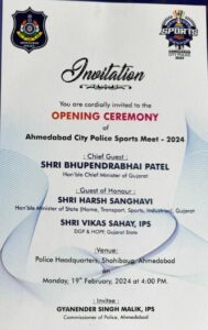 પૉલીસ બેડાની સ્પોર્ટ્સ મીટના કાર્યક્રમમાં ગવર્નિંગ કાઉન્સિલના સભ્ય અને મીડિયા કન્વીનર વિક્રમ જૈનને પણ આમંત્રણ