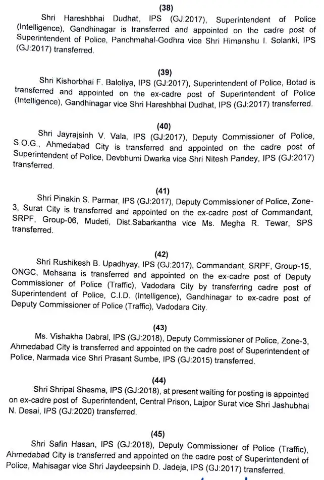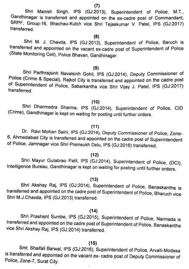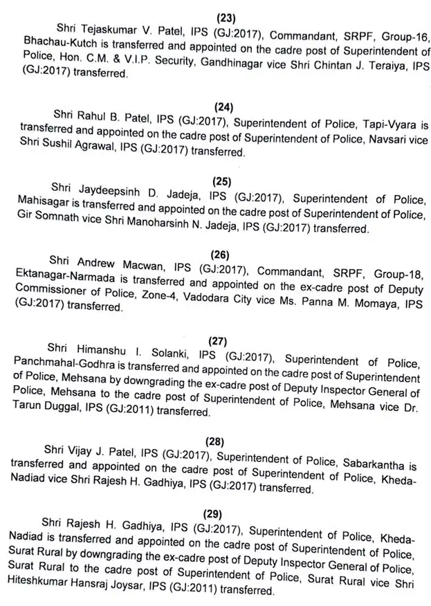 જ્યારે ડો. હર્ષદ પટેલની અમદાવાદ ઝોન-1માં નાયબ પોલીસ કમિશનર તરીકે ટ્રાન્સફર આપવામાં આવી છે. આ ઉપરાંત અક્ષયરાજ મકવાણાની ભરૂચમાં SP તરીકે બદલી આપવામાં આવી છે.