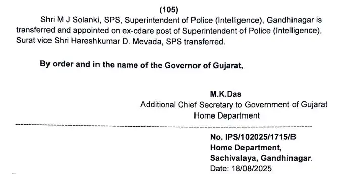 IPS Officers Transfer: ગુજરાતમાં છેલ્લા ઘણા સમયથી IPS અધિકારીઓની બદલી અંગે ચર્ચાઓ ચાલી રહી હતી. હવે ગુજરાતમાં એક સાથે 105 IPS અને SPS અધિકારીઓની બદલી કરવામાં આવી છે. IPS અધિકારીઓની બદલીમાં 2012થી 2021ની બેચના 75 આઈપીએસનો સમાવેશ છે. રાજ્ય પોલીસ વિભાગમાં ફરી એક વખત બદલી કરવામાં આવી છે.