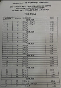 તારીખ ૨૪ થી ૩૧ ઓગસ્ટ ૨૦૨૫ દરમિયાન આયોજિત આ મેગા સ્પોર્ટિંગ ઇવેન્ટ, કોમનવેલ્થ દેશોમાંથી શ્રેષ્ઠ વેઇટલિફ્ટિંગ પ્રતિભાઓને એકત્ર કરશે.૩૦ કોમનવેલ્થ દેશોના ૨૯૧ રમતવીરો,