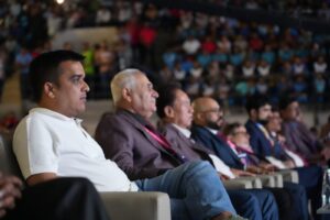કોમનવેલ્થ વેઇટલિફ્ટિંગ ફેડરેશનના પ્રેસિડેન્ટ શ્રી એન્ગ પોહ ઓંગ, એશિયન વેઇટલિફ્ટિંગ ફેડરેશનના સેક્રેટરી જનરલ શ્રી મહોમ્મદ અલહરબી, રાજ્યસભા સાંસદ શ્રી નરહરિ અમીન અને શ્રી બાબુભાઈ દેસાઈ, મહેસાણાના લોકસભા સાંસદ શ્રી હરિભાઈ પટેલ, નારણપુરાના ધારાસભ્ય શ્રી જીતેન્દ્રભાઈ પટેલ, રાજ્ય પોલીસ વડા શ્રી વિકાસ સહાય, રમત ગમત – યુવા અને સાંસ્કૃતિક પ્રવૃતિઓ વિભાગના અગ્રસચિવ શ્રી અશ્વિની કુમાર, ઇન્ડિયન વેઇટલિફ્ટિંગ ફેડરેશનના પ્રેસિડેન્ટ શ્રી સહદેવ યાદવ, ઇન્ડિયન ઓલિમ્પિક એસોસિએશનના સિનિયર વાઇસ પ્રેસિડેન્ટ શ્રી અજય પટેલ, સ્પોર્ટ્સ ઓથોરિટી ઓફ ગુજરાતના ડાયરેક્ટર જનરલ શ્રી સંદીપ સાંગલે, કોમનવેલ્થ વેઇટ લિફ્ટિંગ ચેમ્પિયનશિપ ૨૦૨૫ના સંચાલકો – અધિકારીશ્રીઓ, રાજ્યના રમતગમત વિભાગના પદાધિકારીઓ, અધિકારીઓ, એથલિટ્સ સહિત મોટી સંખ્યામાં ખેલાડીઓ અને વિદ્યાર્થીઓ ઉપસ્થિત રહ્યા હતા.