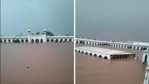 પંજાબના નારોવાલ જિલ્લાની તસવીરોમાં, ગુરુદ્વારા દરબાર સાહિબ સંકુલ પાણીમાં ડૂબેલું જોવા મળે છે. સફેદ આરસપહાણથી બનેલું સંકુલ ત્રણથી ચાર ફૂટ સુધી પાણીથી ભરેલું છે.