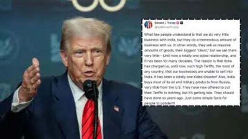 તે ઘણા દાયકાઓથી ચાલી રહ્યો છે.’ ટ્રમ્પે આગળ લખ્યું, `આનું કારણ એ છે કે ભારતે અત્યાર સુધી અમારી પાસેથી એટલા ઊંચા ટેરિફ વસૂલ્યા છે, જે કોઈપણ અન્ય દેશ કરતાં વધુ છે, કે અમારા વ્યવસાયો ભારતમાં માલ વેચી શકતા નથી. તે એક સંપૂર્ણ એકતરફી આપત્તિ રહી છે! વધુમાં, ભારત તેના મોટાભાગના તેલ અને લશ્કરી ઉત્પાદનો રશિયા પાસેથી ખરીદે છે, જે અમેરિકા પાસેથી ખૂબ જ ઓછા છે.’