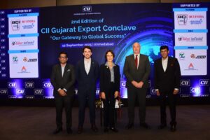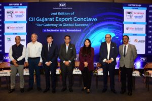 સીઆઈઆઈ ગુજરાત નિકાસ પરિષદનું બીજું સંસ્કરણમાં CII કોન્ક્લેવમાં આંતરરાષ્ટ્રીય રાજદ્વારીઓ અને ઉદ્યોગ નેતાઓએ પ્રાદેશિક કેન્દ્રથી વૈશ્વિક નિકાસ પ્રવેશદ્વાર સુધીના ગુજરાતના માર્ગનું ચિત્ર રજૂ કરવામાં આવ્યું હતું .વૈશ્વિક વેપાર પરિદૃશ્યમાં નેવિગેટ કરવા માટે ગુજરાતના MSME ને વ્યૂહાત્મક આંતરદૃષ્ટિ સાથે સશક્ત બનાવવા માટે મુખ્ય સરકારી અધિકારીઓ, આંતરરાષ્ટ્રીય રાજદ્વારીઓ અને 100 થી વધુ ઉદ્યોગ પ્રતિનિધિઓને એકત્ર કર્યા પછી આજે બીજો CII ગુજરાત નિકાસ કોન્ક્લેવ પૂર્ણ થયો.