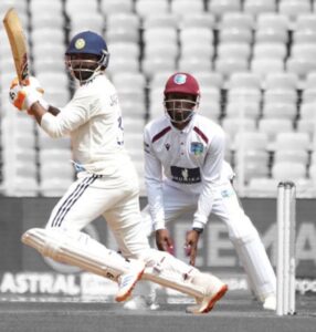 રવીન્દ્ર જાડેજાએ વેસ્ટ ઇન્ડીઝ સામે શાનદાર બેટિંગ પ્રદર્શન કર્યું. તેણે 75 બોલમાં કુલ 50 રન બનાવ્યા, જેમાં ત્રણ ચોગ્ગા અને ચાર છગ્ગાનો સમાવેશ થાય છે.મેચમાં ચાર છગ્ગા ફટકારીને, તેણે ભારત માટે ટેસ્ટ ક્રિકેટમાં સૌથી વધુ છગ્ગા ફટકારવાના મામલે મહેન્દ્ર સિંહ ધોનીને પાછળ છોડી દીધો છે. જાડેજા પાસે હવે ટેસ્ટ ક્રિકેટમાં 79 છગ્ગા છે, જ્યારે ધોનીએ ટેસ્ટ ક્રિકેટમાં 78 છગ્ગા ફટકાર્યા હતા