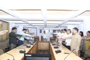 અમદાવાદ જિલ્લા વહીવટી તંત્ર દ્વારા ‘વિકાસ સપ્તાહ’ની ઉજવણીના ભાગરૂપે કલેક્ટર કચેરી ખાતે ‘પ્રતિજ્ઞા સમારોહ’નું આયોજન કરવામાં આવ્યું હતું.અમદાવાદ કલેક્ટર શ્રી સુજીત કુમારની અધ્યક્ષતામાં આ સમારોહમાં ધારાસભ્ય શ્રી અમુલ ભટ્ટ, શ્રી દિનેશ કુશવાહા, શ્રી કિરીટસિંહ ડાભી, શ્રી હર્ષદ પટેલ, તેમજ સાંસદ શ્રી હસમુખ પટેલ વિશેષરૂપે ઉપસ્થિત રહ્યા હતા.આ પવિત્ર અવસરે, જિલ્લા વહીવટી તંત્રના વિવિધ વિભાગોના અધિકારીઓએ સમૂહમાં ‘ભારત વિકાસ પ્રતિજ્ઞા’ લીધી હતી.