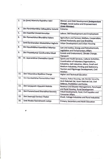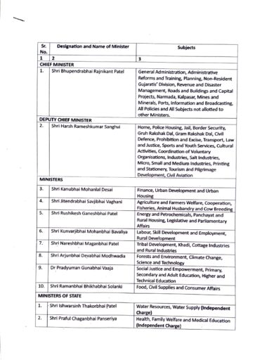 • ગુજરાતના નવા મંત્રીમંડળ નું લિસ્ટ ની યાદી જુઓ, કોને કયું ખાતું ફાળવ્યું