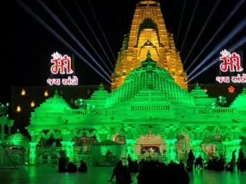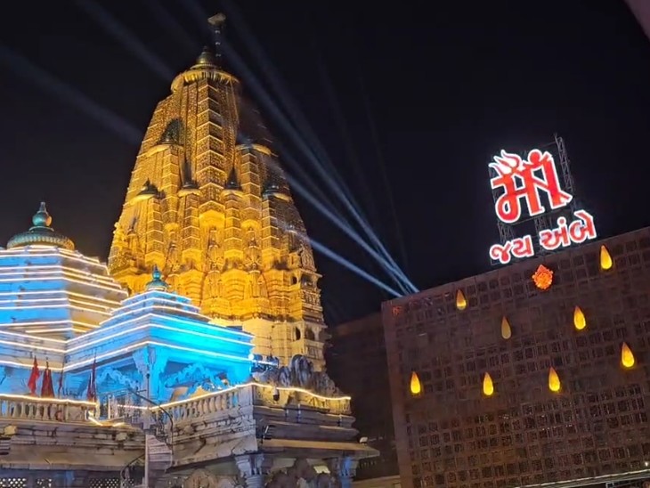 શક્તિ અને આસ્થાના ત્રિવેણી સંગમ સમાન અંબાજી ધામ વિશ્વભરમાં વિખ્યાત છે. મોટી સંખ્યામાં ભક્તો માતા અંબાના દર્શનાર્થે આવે છે. હાલમાં ચાલી રહેલા દિવાળી પર્વ નિમિત્તે શક્તિપીઠ અંબાજી મંદિરને વિવિધ પ્રકારની રોશનીથી શણગારવામાં આવ્યું છે. દિવાળી પર્વને અનુલક્ષીને અંબાજી ખાતે સુંદર લાઈટિંગ કરવામાં આવી છે. મંદિરના શિખરથી લઈને સમગ્ર પરિસરને રંગબેરંગી લાઈટોથી સુશોભિત કરવામાં આવ્યું છે, જે રાત્રિ દરમિયાન મંદિરની ભવ્યતામાં વધારો કરે છે. દિવાળીને પ્રકાશ અને રોશનીના પર્વ તરીકે ઓળખવામાં આવે છે. આ પવિત્ર અવસરે ગુજરાતના સૌથી મોટા શક્તિપીઠ પૈકીના એક એવા અંબાજી મંદિરને વિશેષ રીતે સજાવવામાં આવ્યું છે. દિવાળી અને નવા વર્ષ નિમિત્તે મોટી સંખ્યામાં ભક્તો માતા અંબાના દર્શન કરવા અંબાજી આવવાની અપેક્ષા છે. આ રોશની ભક્તોમાં ઉત્સાહ જગાવી રહી છે.