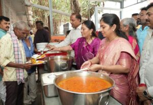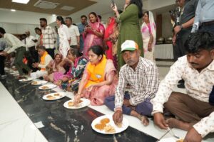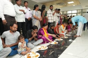 નાયબ મુખ્યમંત્રીશ્રી હર્ષભાઈ સંઘવીએ સફાઈ કર્મચારીઓ સાથે બેસીને ભોજન લીધું