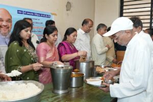 ગાંધીનગર મહાનગર ભાજપા મીડિયા વિભાગની અખબારી યાદી જણાવે છે કે, ગાંધીનગર લોકસભા ક્ષેત્રના લોકપ્રિય સાંસદ તેમજ કેન્દ્રીય ગૃહ અને સહકાર મંત્રીશ્રી અમિતભાઈ શાહના જન્મદિવસ નિમિત્તે ગાંધીનગર શહેર ભાજપ અધ્યક્ષ આશિષકુમાર દવેના માર્ગદર્શન હેઠળ શહેર ભાજપ દ્વારા વિવિધ સેવાકીય પ્રવૃત્તિઓનું આયોજન કરવામાં આવ્યું હતું. ગાંધીનગર શહેર ભાજપ પરિવાર દ્વારા ટાઉનહોલ સેકટર ૧૭ ખાતે ગાંધીનગર મનપાના ૧૫૦૦ સફાઈ કામદારો માટે સમરસ ભોજન સમારંભ અને સ્વેટર વિતરણના કાર્યક્રમનું આયોજન કરવામાં આવ્યું હતું જેમાં રાજ્યના નાયબ મુખ્યમંત્રીશ્રી હર્ષભાઈ સંઘવીએ વિશેષ ઉપસ્થિત રહી સફાઈ કર્મચારીઓ સાથે બેસીને ભોજન લીધું હતું અને વાર્તાલાપ કર્યો હતો.