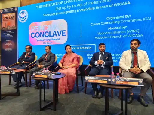 વડોદરા ICAI તેમજ વડોદરા WICASA દ્વારા આજે પ્રિન્સિપલ્સ કોન્કલેવ 2025નું આયોજન કરવામાં આવ્યું છે અને કાર્યક્રમમાં રાજ્યના મહિલા અને બાળ કલ્યાણ મંત્રી ડૉ. મનીષાબેન વકીલ દ્વારા આ કાર્યક્રમનો શુભારંભ કરાવવામાં આવ્યો હતો. આ કોન્કલેવનો મુખ્ય હેતુ પ્રિન્સિપાલ્સ, શિક્ષણવિદો અને કોમર્સ-ફાઇનાન્સ ક્ષેત્રના પ્રોફેશનલ્સને એક મંચ પર લાવીને કોમર્સ શિક્ષણના બદલાતા માળખા, નાણાકીય સાક્ષરતા અને વિદ્યાર્થીઓ માટેના કરિયર અવસર અંગે માર્ગદર્શન તથા ચર્ચા કરવાનો છે. આ ઉપરાંત સ્કૂલો કેવી રીતે વિદ્યાર્થીઓને એકાઉન્ટિંગ, ફાયનાન્સ અને મેનેજમેન્ટ ક્ષેત્રોમાં ઉજ્જવળ ભવિષ્ય તરફ માર્ગદર્શન આપી શકે તે અંગે પણ સમૃદ્ધ ચર્ચા કરવામાં આવી હતી.