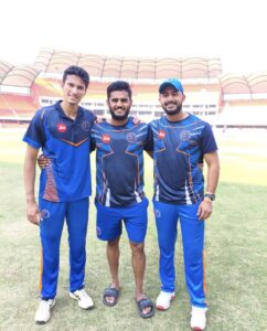 ગુજરાત તરફથી બોલિંગમાં નાગવાસવાલાએ 4 ઓવરમાં 40 રન આપીને 2 વિકેટ,જે કે ભટ્ટે 4 ઓવરમાં 31 રન આપીને 2 વિકેટ અને