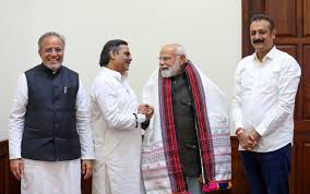 રાજુલાના પૂર્વ ધારાસભ્ય અને ભાજપ નેતા અંબરીષ ડેર દ્વારા દિલ્હીમાં પ્રધાનમંત્રી નરેન્દ્રભાઈ મોદી સાથે શુભેચ્છા મુલાકાત કરવામાં આવી હતી. આ મુલાકાત દરમિયાન પ્રધાનમંત્રીએ ડેરની રાજુલા નગરપાલિકાના કાર્યકાળ, યુવા ભાજપના કાર્યકર તરીકેની સફર સહિત અનેક જૂની પળોને યાદ કરીને ઉજ્જવળ ભવિષ્યની પ્રગતિ માટે શુભેચ્છાઓ પાઠવી હતી. આ મુલાકાત દરમિયાન કેબિનેટ મંત્રી અર્જુનભાઈ મોઢવાડિયા અને લોક સાહિત્યકાર માયાભાઈ આહિર ઉપસ્થિત રહ્યા હતા.