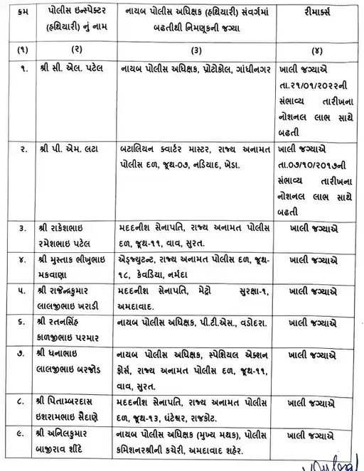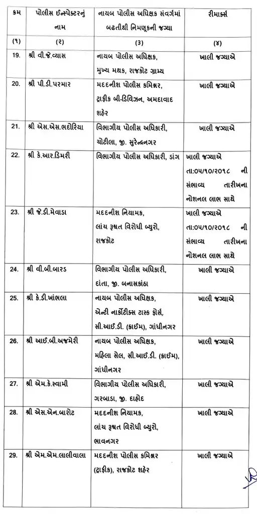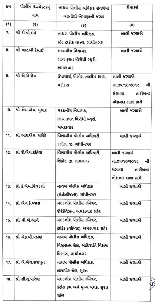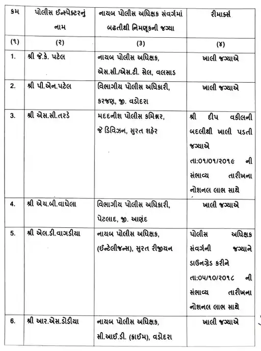 7 DySPની બદલી કરવામાં આવી