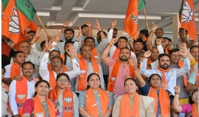 કાર્યકરો સહિત અનેક આગેવાનો ગાંધીનગર કમલમ ખાતે એકઠા થયા અને ઢોલ નગારા સાથે ઉજવણી કરી.