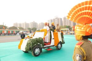 રાજ્યના નાયબ મુખ્યમંત્રીશ્રી હર્ષ સંઘવીની પ્રોત્સાહક ઉપસ્થિતિમાં ૭૭મા પ્રજાસત્તાક પર્વની અમદાવાદ જિલ્લા કક્ષાની ભવ્ય ઉજવણી અમદાવાદ ગ્રામ્ય જિલ્લા પોલીસ હેડ ક્વાર્ટર, મકરબા ખાતે દેશભક્તિના જોમ અને ઉત્સાહ સાથે કરવામાં આવી હતી.