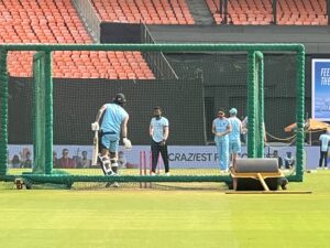 અમદાવાદના નરેન્દ્ર મોદી સ્ટેડિયમ ખાતે આજે ભારત અને નેધરલેન્ડ્સ વચ્ચે આખરી લીગ મેચ રમાશે.મેચ પહેલા સૂર્યકુમાર યાદવે પિચ નું નિરીક્ષણ કર્યું હતું.અને બંને ટીમોના ખેલાડીઓએ નેટ પ્રેક્ટિસ પરસેવો પાડ્યો હતો.