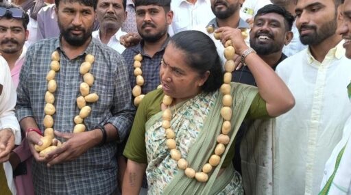 બટાકાના બમ્પર ઉત્પાદન વચ્ચે યોગ્ય ભાવ ન મળતાં ખેડૂતોમાં રોષ ભભૂકી ઉઠ્યો છે. થરાદ જિલ્લા કલેક્ટર કચેરી ખાતે મોટી સંખ્યામાં ખેડૂતો અને ગેનીબેન સહિત કોંગ્રેસના કાર્યકરોએ પ્રતિકાત્મક રીતે ગળામાં બટાકાના હાર પહેરીને ઉગ્ર વિરોધ નોંધાવ્યો હતો અને આવેદનપત્ર પાઠવી તાત્કાલિક ન્યાયની માંગ કરી હતી.