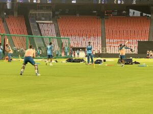 અમદાવાદના નરેન્દ્ર મોદી સ્ટેડિયમ ખાતે ગુજરાત ટાઇટન્સ અને રોયલ ચેલેન્જર્સ બેંગલુરુના ખેલાડીઓએ પ્રૅક્ટિસ કરી હતી